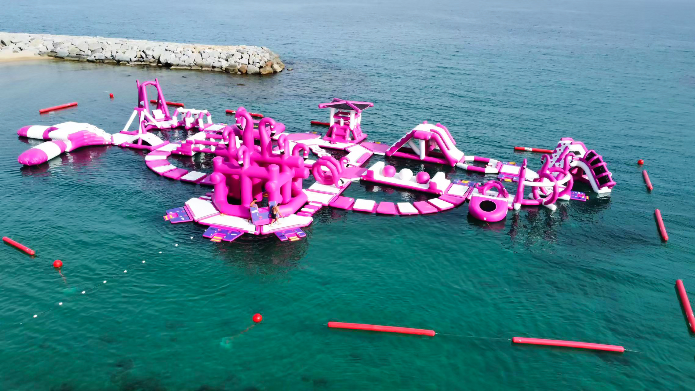 Ang pink inflatable water park na ito ay nagtatampok ng maraming inflatable slide, climbing wall, balance beam, jumping zone, at magkakaugnay na obstacle courses – lahat ay idinisenyo upang ma-maximize ang kasiyahan at pisikal na pakikipag-ugnayan. Ang modular na disenyo ay nagbibigay-daan para sa mga flexible na layout, madaling transportasyon, at mabilis na pag-install, na ginagawa itong mainam para sa mga seasonal rental o permanenteng pag-install.